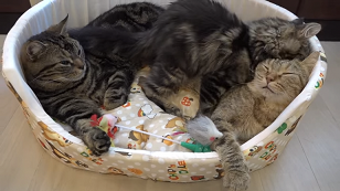 優しい先輩ねこさんたちにかこまれて、幸せいっぱいのおさむくんなのでした(*´艸`*)
