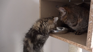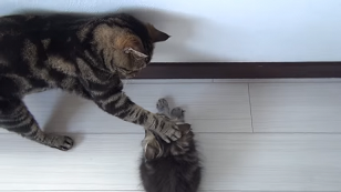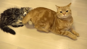 先輩ねこさんにちょっかいをかけまくるおさむくん。