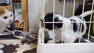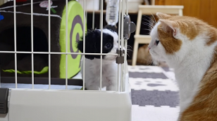 先輩ねこのマンチカンさんたちと緊張の初対面…