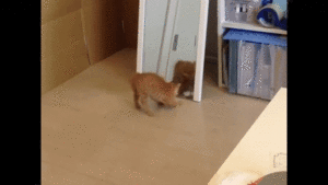 「ニャんでおんなじ動きするんだニャ(゚Д゚≡゚Д゚)」