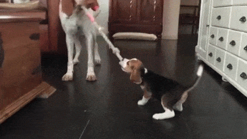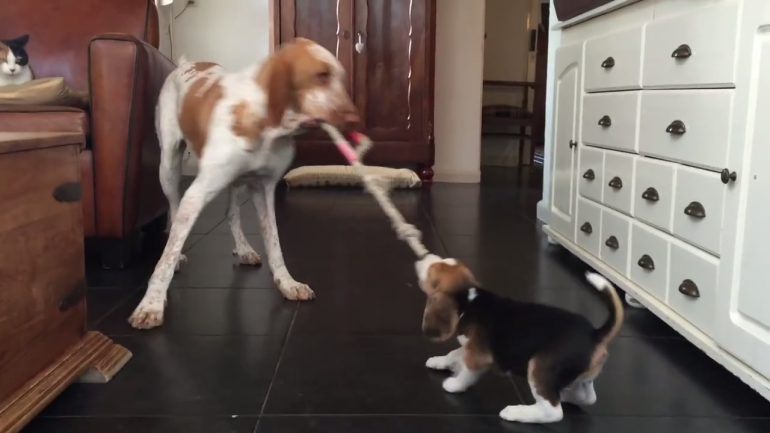 この体格差、果たしてビーグルちゃんに勝ち目はあるのでしょうか!?