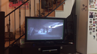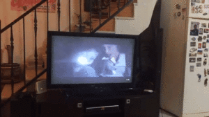 飼い主さんとホラー映画を観ています。