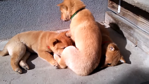 ポカポカ日差しに包まれて、ゆっくりと眠りにつく3兄妹でした!