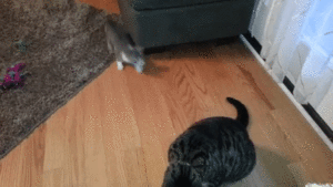 以上、大ニャンコにちょっかいをかけ続ける、やんちゃな子にゃんこでした♡