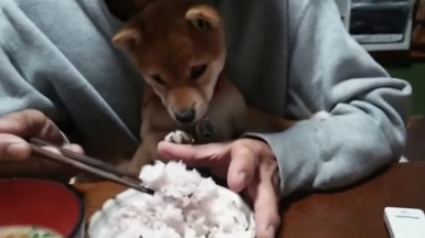 豆柴ちゃんの目の前には、おいしそうなゴハン!