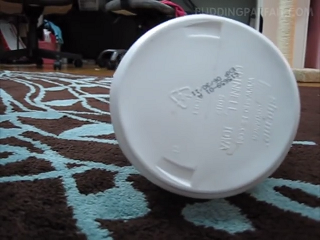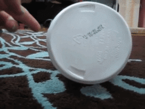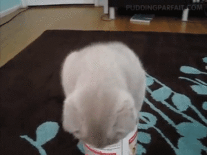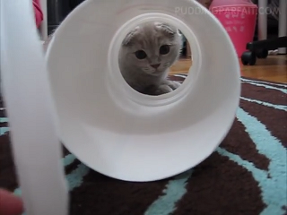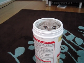 底の空いた缶からこちらをみつめるプリンちゃん。