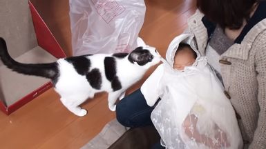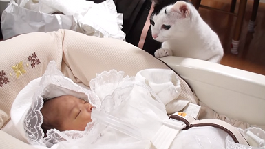 赤ちゃんに興味津々なシイちゃん。