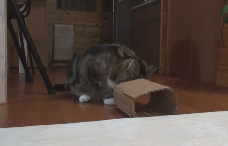 いい感じにダンボールをかぶれて、嬉しそうなまるちゃん☆