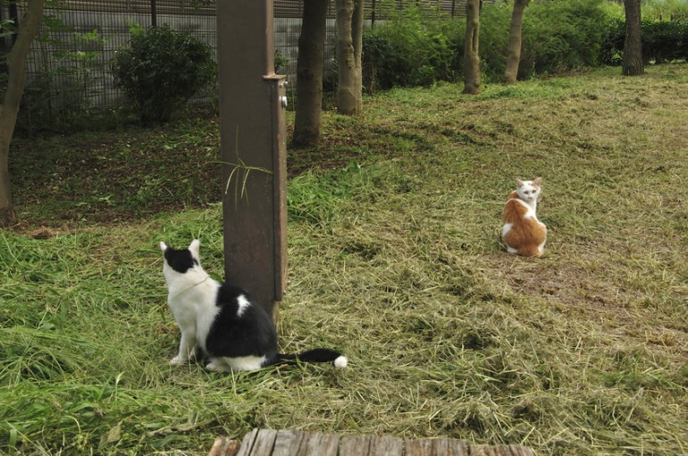 画面に垂直・水平に置きがちな被写体を斜めに配置する構図です。多頭飼いの場合や小物などと一緒に撮るときなども、横に並べるより対角線上のほうがすっきりオシャレに見えます。