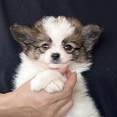 パピヨンの子犬ですが、初めて会ったときからフレンドリーで、長男と気持ちが通じ合ったようです。