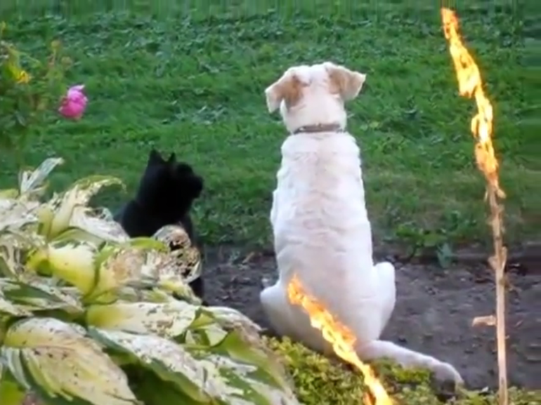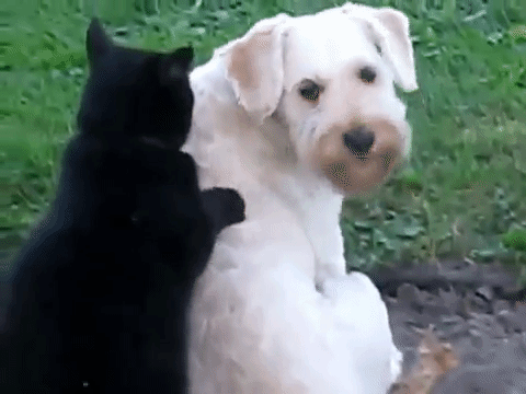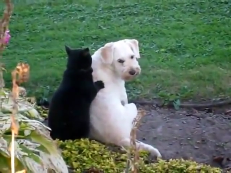 すると、ネコちゃんがおもむろにワンちゃんの背後にまわり・・・
