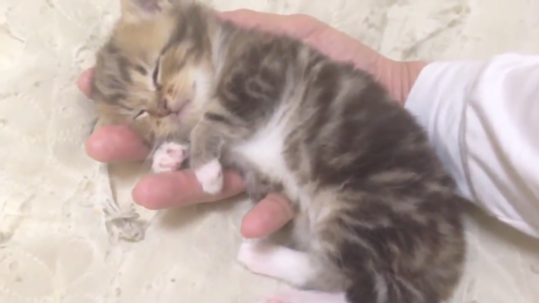 あどけない表情でぐっすり眠る手乗りこねこちゃんでした☆