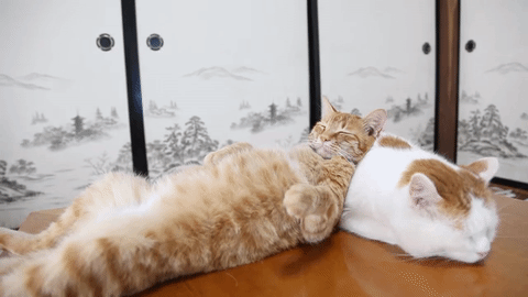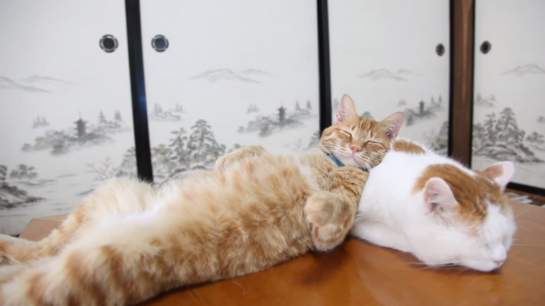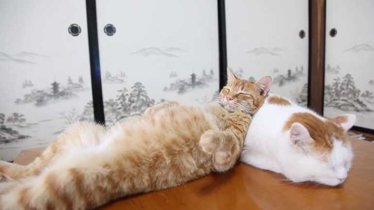 ふたりなかよくスヤスヤ眠っているのは「茶トラくん」と「シロくん」♡