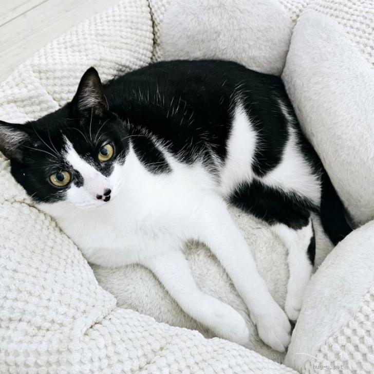 ○生後3ヶ月くらい(2025年12月時点)の黒白ハチワレの女の子です。