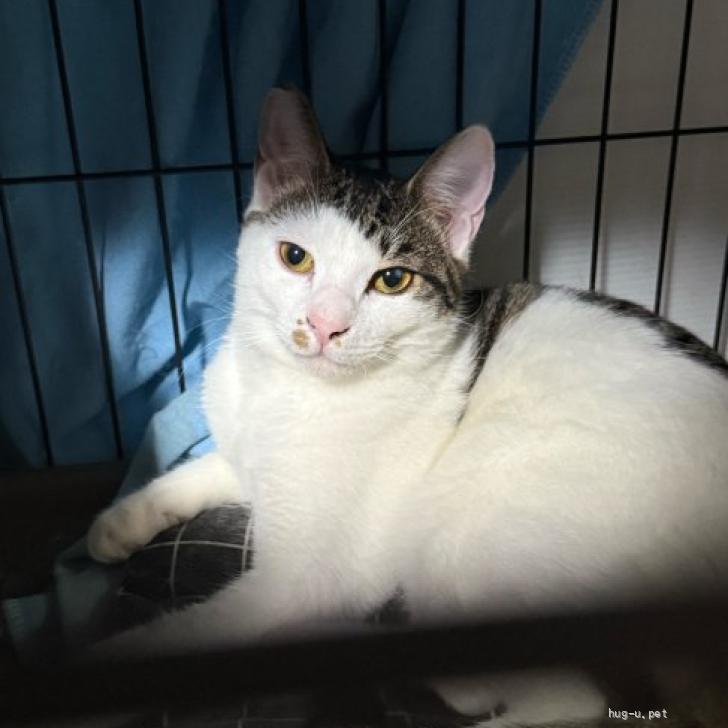 まだ保護したで警戒心はありますが、初対面でもケージ内であれば逃げずに撫でさせてくれる大人しめの子です。