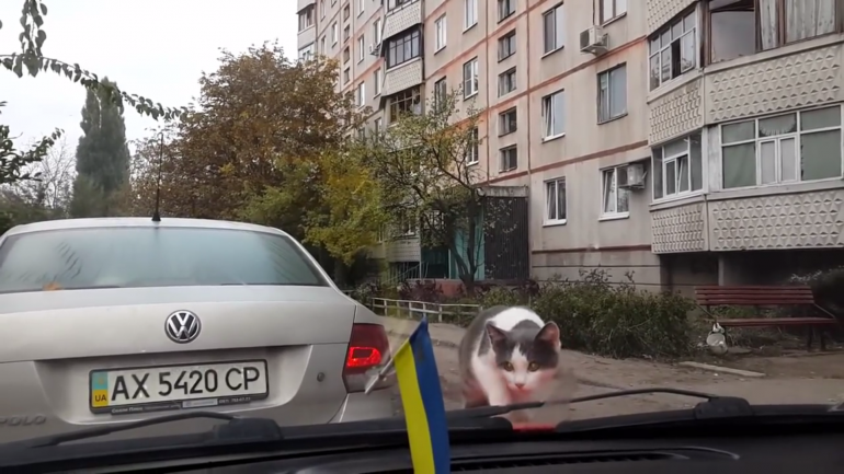再び動き出したワイパーに意表をつかれたねこちゃん!!