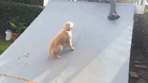 小さなワンちゃんは飼い主さんと追いかけっこ中♡