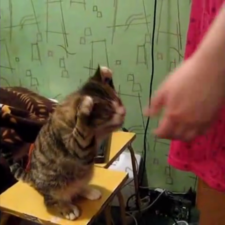 キジトラさん「あのですにゃ、頭をこんにゃ感じで、なでなでしてほしいのですにゃ!!」