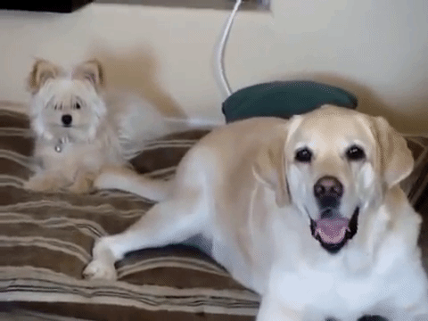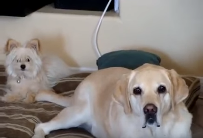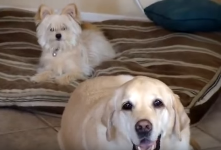 ご主人が、手前にいる大きいサイズのわんこに声をかけると…