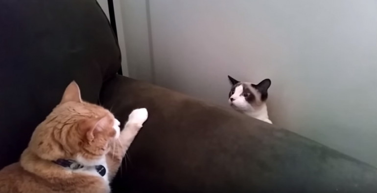 じっと見つめあう2匹・・・これは一発触発かっ!?