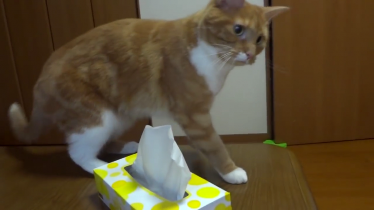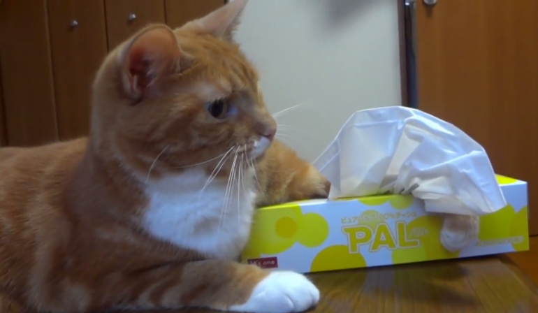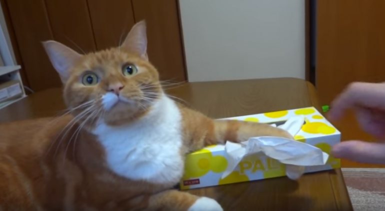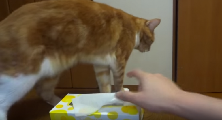 飼い主さんはもう一度ティッシュに手をのばしますが・・・