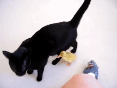 にゃんことアヒルさんの、貴重な2ショットでした(人´ω`*)